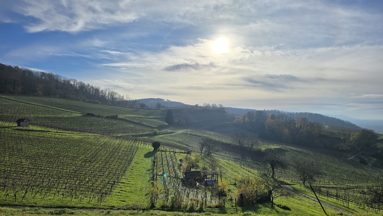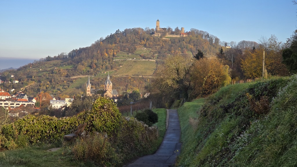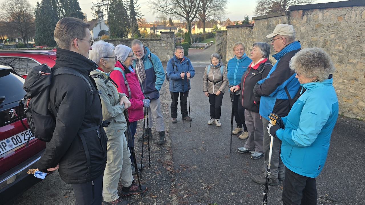 Wanderung des OWK auf dem Guldenzoll-Weg Das Wetter spielte mit bei der Wanderung des OWK‘s durch Wein und Stein auf dem Guldenzoll-Weg im Heppenheim am 16. November. Oberhalb des Friedhofes führte der Weg in die Weinlage Heppenheimer Eckweg. Durch das Unkental aufwärts , an der alten Weinlage Guldenzoll vorbei, erreichten wir den Waldrand. Die Einzellage Guldenzoll wurde 2005 in die Weinlage Eckweg integriert. Belohnt wurden wir nach dem steilen Anstieg mit Ausblicken über die Weinberge, die Bergstraße, das Rheintal sowie die Nord und Südpfalz. Durch den Mischwald ging es weiter zu der Schutzhütte bei der mächtigen Arnoldseiche. Hier machte die Gruppe eine längere Pause, danach wanderten wir durch die Waldgemarkung Steinmauer und das Quellgebiet des Bombaches weiter bis zum Waldrand des oberen Taubenberges. Hier wurden uns auch wieder Ausblicke über die vorderen Odenwaldhöhen und ins Rheintal geboten. In Serpentinen ging es dann abwärts durch das Tal des Bombaches, hier kursieren einige Sagengeschichten, wie beispielsweise die des „ Teufelstein in der Bombach“. Der von Winzern in die Enge getriebene Teufel sprang der Sage nach über eine weite Schlucht des Baches und hinterließ in einem Fels seine Fußabdrücke, die noch heute angeblich zu sehen sein sollen. Auch die Bombachelfen sollen hier zu beobachten sein. Die zauberhaften Wesen mit Flügeln fliegen in hellen Mondnächten aus dem Bombachwald heraus auf die umliegenden Wiesen des Tales. Am Ende des Waldes erreichte der Rundweg wieder die Weinberge der Lage Eckweg und brachte uns nach 10 km. zum Ausgangspunkt zurück und zum Mittagsessen in den “Goldenen Engel“ auf den Marktplatz nach Heppenheim. Wilfried Himken bedankte sich bei den beiden Wanderführerinnen für den schönen Tag.