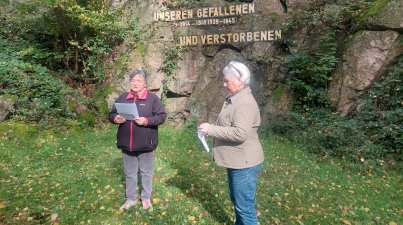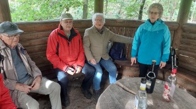 Wanderung zum Ehrenmal des OWK Der Odenwaldklub Bensheim e.V. wanderte am Sonntag (13.10.24) zur OWK Gedenkstätte. Man traf sich am Busbahnhof, um in Fahrgemeinschaften zum Startpunkt Schönberger Sportplatz zu fahren. Dort traf sich die Gruppe mit weiteren Teilnehmern. Bei bestem Wanderwetter ging es zunächst oberhalb des Fürstenlagers und dann auf Naturwegen durch den Wald, zur Schutzhütte am „Fuchtreil“, da wurde eine Pause gemacht, bevor es weiterging, am Jerusalem Friedensmal und Selteswasserhäuschen vorbei zum Ehrenmal des OWK. Zwei weitere Teilnehmerinnen haben dort auf die Gruppe gewartet. Gemeinsam wurde mit Gedicht, Gebet und einem Lied „Möge die Straße uns zusammenführen“ an die verstorbenen Mitglieder gedacht. Anschließend ging es zum Mittagsessen und gemütlichem Beisammensein in die Waldgaststätte Borstein. Nach der Stärkung und gut gelaunt wanderte die Gruppe zum Ausgangspunkt zurück. Brigitte Bach bedankte sich bei der Wanderführung für den schönen Tag.
