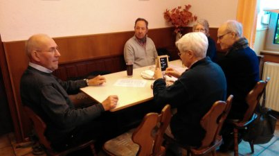 Nebelwanderung am 07.11.2021 Es hat nicht sollen sein! Anstatt, daß das Wetter die Wanderung des OWK Bensheim, am 07.11., mit Sonnenschein verwöhnte, empfing die Wanderer dichter Nebel in Lindenfels. Dort führte die letzte Tour, vorbei an der Burg, auf bunt gefärbten Wegen, hinunter nach Schlierbach, wo man für die Mittagsrast einkehrte. Anschließend ging es dann auf Feld- und Waldwegen, vorbei an Winkel, hinauf wieder nach Lindenfels. Der Nebel verbreitete eine mystische Atmosphäre, was der Stimmung unter den Wanderern keinen Abbruch tat. Am Ausgangspunkt wieder angekommen, dankte Willi Völker den Wanderführern G. Hehler und K. Schumacher für diese schöne, aber eigenartige Tour.