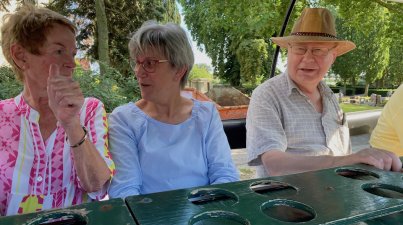 Mit Pferdestärken in die Natur zur Weinprobe! Für den Odenwaldklub Bensheim ging es mit dem Planwagen mit Pferdegespann vom Birkenhof Stall Trautmann in Schwanheim los. Die Spätnachmmittagsonne begleitete uns von Schwanheim 1.5 Stunden durch die Felder und Wiesen von Fehlheim, über Rodau, bis in den Berliner Ring, nach Auerbach, zum Weingut Hanno Rothweiler. Zur Freude aller Mitglieder und Gäste; eine schöne Ausfahrt. Am Weingut Rothweiler begrüßte uns Frau Christa Guth im Außenbereich mit einem Secco Staccato. Ein gelungener Auftakt für die folgende Weinprobe im Weingut. Auf jeden Gast wartete ein reichlicher Vesperteller mit Wurst, Käse und frischem Brot, sechs ausgewählte Weine, und für die Teilnehmer, die nicht den Wein probieren wollten, verschiedene Säfte, so dass keiner durstig nach Hause musste. Christa Guth erklärte uns mit viel Wissen und Freude die Unterschiede und Besonderheiten der einzelnen Weine. Äußerst kurzweilig erfuhren wir viele interessante Details, rund um Weinanbau, Rebenpflege und Weinherstellung. „Der Wegweiser zu gutem Geschmack“; wie Winzer Hanno Rothweiler in seinem Flyer seine Weine besonders herausstellt. Zwischen Sommercuvee, rotem Riesling, gelbem Muskateller, Grauburgunder Lemberger-Merlot, und einem erstklassigen Cabernet-Sauvignon, fiel die Wahl für den persönlichen Favoriten sehr schwer. Es war erneut ein gelungener, genussvoller, fröhlicher und unterhaltsamer Abend. Vielen Dank an Frau Brigitte Bach, vom OWK Bensheim, für die großartige Planung und Vorbereitung. Schließen Sie sich uns nächstes Mal gerne an.
