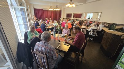 Unterwegs im Westerwald Der OWK Bensheim reiste mit Busfahrer Jens nach Dornburg im Westerwald. Herr Joachim Habel vom Westerwaldverein Zweig Limburg-Dornburg führte die Gruppe zur „Kälte“ und zu den „Kelten“. Herr Habel ist pensionierter Lehrer und führt seit Jahren heimathistorische Führungen über die Dornburg und hält Vorträge zu vorgeschichtlichen Themen, speziell über die Kelten. Die Stationen der Dornburgführung waren: Das Naturwunder 2023 das „Ewige Eis“, die Aussichtsplattform Hildegardisfelsen, das Kelten-Oppidum eine vorgeschichtliche stadtähnliche Siedlung mit Wallresten und der heute noch 10 – 11 m hohe Abschnittswall. Auf dem Weg gab es mehrere Stationen an denen Herr Habel, unter Verwendung von Abbildungen, in Originalgröße nachgearbeitetem Schmuck, Gefäßen und einem Schwert die Kelten gewissermaßen zum Leben erweckte. Die Zeit verging wie im Flug. Mitten im Wald in einer Grillhütte bewirtete der Verschönerungsverein von Dornburg die Gruppe mit Weck und „Worscht“. Die nächste Etappe war die Westerwälder Seenplatte. Dies ist ein von Graf Friedrich III zu Wied im 17. Jh. angelegtes Seengebiet mit 7 Seen, das ursprünglich zur Fischzucht angelegt wurde. Das Naturschutzgebiet mit seiner naturbelassenen Vegetation dient heute vor allem Zugvögel aus aller Welt als Rastgebiet bei ihren Zügen. Der Dreifelder See wurde von der OWK-Gruppe mit Wanderwart Herr Görg vom Westerwaldverein Selters auf einem Rundweg von ca. 6 km umwandert, bevor sich beide Gruppen in Hachenburg trafen. Brigitte Bach, Vorsitzende des OWK Bensheim, hat beide Wanderführer, mit ihren Vereinen, zu einem Gegenbesuch im kommenden Jahr eingeladen. Eine zweite Gruppe erkundete mit Stadtführerin Frau Schnell „ihre“ historische Stadt Hachenburg und erfuhr so manches Insiderwissen. In Hachenburg erzählt man sich die Geschichte von drei Frauen, die sich über Jahrzehnte hinweg für das Gemeinwohl der Stadt eingesetzt haben. Sie gründeten einst einen kleinen Lesekreis, der sich regelmäßig in einem der charmanten Fachwerkhäuser traf und aus dem später eine Initiative zur Erhaltung des historischen Stadtkerns entstand. Durch ihr Engagement bei Veranstaltungen und Stadtfesten wurden sie zu bekannten Gesichtern in Hachenburg und inspirierten viele Bürgerinnen und Bürger dazu, sich ebenfalls für ihre Stadt einzusetzen. Die Stadt wird von den Einheimischen heimlich als Kulturhauptstadt des Westerwaldes bezeichnet. Die Einkehr zum Abschluss war im Brauereigasthaus „Zur Krone“. Es ist das historisch bedeutendste Wirtshaus im Zentrum von Hachenburg. Bereits seit dem 17. Jahrhundert werden hier Gäste bewirtet und die traditionellen Biere aus der Region serviert. Die urige Atmosphäre, die original erhaltene Fachwerkfassade und die enge Verbindung zur regionalen Braukultur machen die „Krone“ zu einem beliebten Treffpunkt für Einheimische und Besucher gleichermaßen. Beeindruckt von der Natur und Vielfalt des Westerwaldes entstand bei vielen Teilnehmenden der Wunsch, noch mehr von dieser Region kennenzulernen.