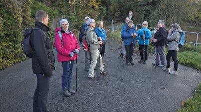 Wanderung des OWK auf dem Guldenzoll-Weg Das Wetter spielte mit bei der Wanderung des OWK‘s durch Wein und Stein auf dem Guldenzoll-Weg im Heppenheim am 16. November. Oberhalb des Friedhofes führte der Weg in die Weinlage Heppenheimer Eckweg. Durch das Unkental aufwärts , an der alten Weinlage Guldenzoll vorbei, erreichten wir den Waldrand. Die Einzellage Guldenzoll wurde 2005 in die Weinlage Eckweg integriert. Belohnt wurden wir nach dem steilen Anstieg mit Ausblicken über die Weinberge, die Bergstraße, das Rheintal sowie die Nord und Südpfalz. Durch den Mischwald ging es weiter zu der Schutzhütte bei der mächtigen Arnoldseiche. Hier machte die Gruppe eine längere Pause, danach wanderten wir durch die Waldgemarkung Steinmauer und das Quellgebiet des Bombaches weiter bis zum Waldrand des oberen Taubenberges. Hier wurden uns auch wieder Ausblicke über die vorderen Odenwaldhöhen und ins Rheintal geboten. In Serpentinen ging es dann abwärts durch das Tal des Bombaches, hier kursieren einige Sagengeschichten, wie beispielsweise die des „ Teufelstein in der Bombach“. Der von Winzern in die Enge getriebene Teufel sprang der Sage nach über eine weite Schlucht des Baches und hinterließ in einem Fels seine Fußabdrücke, die noch heute angeblich zu sehen sein sollen. Auch die Bombachelfen sollen hier zu beobachten sein. Die zauberhaften Wesen mit Flügeln fliegen in hellen Mondnächten aus dem Bombachwald heraus auf die umliegenden Wiesen des Tales. Am Ende des Waldes erreichte der Rundweg wieder die Weinberge der Lage Eckweg und brachte uns nach 10 km. zum Ausgangspunkt zurück und zum Mittagsessen in den “Goldenen Engel“ auf den Marktplatz nach Heppenheim. Wilfried Himken bedankte sich bei den beiden Wanderführerinnen für den schönen Tag.