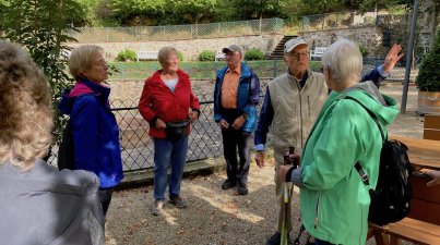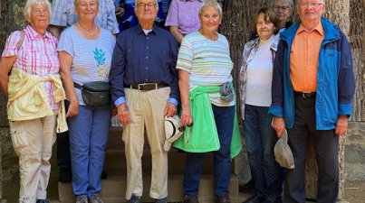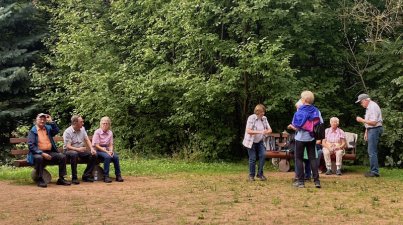 OWK Bensheim besuchte die Eremitage im Fürstenlager. 11 Teilnehmer wanderten bei angenehmen Wetter durch den Landschaftspark Fürstenlager, der Sommerresidenz des Landgrafen Ludwig von Hessen Darmstadt. Der Park hat eine Größe von 46 ha. Der Weg führt vorbei an Wohn- und Wirtschaftsgebäude, die dorfartig um den Gesundbrunnen, neben dem Hauptgebäude, angelegt sind. Im Brunnen hatte man 1783 eine eisenhaltige Quelle entdeckt, die man später erschloss. Erbprinz Ludwig und Gemahlin besuchten im Sommer regelmäßig das Fürstenlager. Auf der Wiese, vor dem Hauptgebäude, lagerten im Sommer Fürsten und Adlige. Daher auch der Name "Fürstenlager". Vorbei an teils exotischen Pflanzen, führt ein leicht ansteigender Weg zur Eremitage. Die Eremitage ist ein mit Baumrinden verkleidetes Holzhaus, mit einem schilfgedeckten Dach. Leider kann man das interessante Gebäude nicht von innen besichtigen. Die Eremitage wurde einst vom Adel als Rastplatz genutzt. Auch die Teilnehmer der Wanderungen machten hier eine kurze Rast. Nach einem kurzen Aufstieg erreichten wir den Höhenweg in Richtung Herrenwingert, Waldhaus und Kirchberg. Im Kirchberghäuschen hatte man zur Schlussrast eingeladen. Auf dem Heimweg, durch die Weinberge, bedankte sich Brigitte Bach bei den Wanderführern Agathe Mayer und Willi Völker, für die schöne und interessante Wanderung.