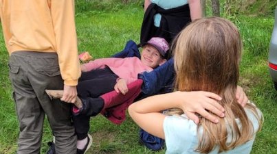 Ferienbetreuung Outdoor Barfußpfad, Schatzsuche und Tipi bauen: Es war eine Menge los bei der Ferienbetreuung Outdoor des Odenwaldklubs Bensheim e.V. in der letzten Sommerferienwoche. Von Mittwoch bis Freitag kamen 26 Kinder im Grundschulalter aus Bensheim und Umgebung und verbrachten die Tage, unter der Leitung der beiden Naturpädagogen Daniel Brendle und Rebecca Goga, draußen im Freien. Mit einem Räucherritual und einer Indianergeschichte fingen die Outdoortage am „Lagerfeuer ohne Feuer“ gemütlich an. Der Mittwoch stand ganz unter dem Motto Ankommen und Achtsamkeit. Auf einem kleinen Waldspaziergang wurde spielerisch der Wald erkundet und ein kurzes Ritual mit Atem- und Bewegungstechniken einstudiert. Mit einigen Barfußübungen wurden Koordination und Geschicklichkeit trainiert und der Barfußpfad neugierig ausprobiert. Mithilfe von Bällen massierten sich die Kinder, unter Anleitung, Reflexzonen an den Fußsohlen. Am Donnerstag stand die mit Spannung erwartete Schatzsuche auf dem Programm. In vier Gruppen aufgeteilt folgten die Kids Pfeilen und Wegmarkierungen, mussten Zahlenschlösser öffnen und Rätsel lösen. Am Ende ergaben die vier ergatterten Teile die endgültige Schatzkarte und die Schatzkiste mit einem kleinen Snack und funkelnden blauen Steinen war schnell gefunden. Nach dem Mittagessen wurden neben freiem Spiel weitere Projekte angeboten, wie die Hütte bemalen, oder eine Trage für Verletzte bauen. Ganz vom Regen wurde die Outdoorbetreuung nicht verschont. Am letzten Tag um die Mittagszeit schüttete es, ganz passend zu den geplanten Wasserexperimenten. „Es hielt sich zum Glück aber in Grenzen. Den Kindern hat das sowieso kaum was ausgemacht“, lacht Organisator Daniel Brendle und bedankt sich sowohl bei den Betreuerinnen Elfi Klinger und Silke Alderete, als auch bei der Vorsitzenden Brigitte Bach mit Team, die sich um das Mittagessen gekümmert haben. „Es waren wieder rundum gelungene Outdoortage, und die Kinder hatten neben unserem Programm noch genügend Gelegenheit, sich in der Natur frei zu bewegen, zu spielen und zu bauen“.