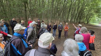Unterwegs im Westerwald Der OWK Bensheim reiste mit Busfahrer Jens nach Dornburg im Westerwald. Herr Joachim Habel vom Westerwaldverein Zweig Limburg-Dornburg führte die Gruppe zur „Kälte“ und zu den „Kelten“. Herr Habel ist pensionierter Lehrer und führt seit Jahren heimathistorische Führungen über die Dornburg und hält Vorträge zu vorgeschichtlichen Themen, speziell über die Kelten. Die Stationen der Dornburgführung waren: Das Naturwunder 2023 das „Ewige Eis“, die Aussichtsplattform Hildegardisfelsen, das Kelten-Oppidum eine vorgeschichtliche stadtähnliche Siedlung mit Wallresten und der heute noch 10 – 11 m hohe Abschnittswall. Auf dem Weg gab es mehrere Stationen an denen Herr Habel, unter Verwendung von Abbildungen, in Originalgröße nachgearbeitetem Schmuck, Gefäßen und einem Schwert die Kelten gewissermaßen zum Leben erweckte. Die Zeit verging wie im Flug. Mitten im Wald in einer Grillhütte bewirtete der Verschönerungsverein von Dornburg die Gruppe mit Weck und „Worscht“. Die nächste Etappe war die Westerwälder Seenplatte. Dies ist ein von Graf Friedrich III zu Wied im 17. Jh. angelegtes Seengebiet mit 7 Seen, das ursprünglich zur Fischzucht angelegt wurde. Das Naturschutzgebiet mit seiner naturbelassenen Vegetation dient heute vor allem Zugvögel aus aller Welt als Rastgebiet bei ihren Zügen. Der Dreifelder See wurde von der OWK-Gruppe mit Wanderwart Herr Görg vom Westerwaldverein Selters auf einem Rundweg von ca. 6 km umwandert, bevor sich beide Gruppen in Hachenburg trafen. Brigitte Bach, Vorsitzende des OWK Bensheim, hat beide Wanderführer, mit ihren Vereinen, zu einem Gegenbesuch im kommenden Jahr eingeladen. Eine zweite Gruppe erkundete mit Stadtführerin Frau Schnell „ihre“ historische Stadt Hachenburg und erfuhr so manches Insiderwissen. In Hachenburg erzählt man sich die Geschichte von drei Frauen, die sich über Jahrzehnte hinweg für das Gemeinwohl der Stadt eingesetzt haben. Sie gründeten einst einen kleinen Lesekreis, der sich regelmäßig in einem der charmanten Fachwerkhäuser traf und aus dem später eine Initiative zur Erhaltung des historischen Stadtkerns entstand. Durch ihr Engagement bei Veranstaltungen und Stadtfesten wurden sie zu bekannten Gesichtern in Hachenburg und inspirierten viele Bürgerinnen und Bürger dazu, sich ebenfalls für ihre Stadt einzusetzen. Die Stadt wird von den Einheimischen heimlich als Kulturhauptstadt des Westerwaldes bezeichnet. Die Einkehr zum Abschluss war im Brauereigasthaus „Zur Krone“. Es ist das historisch bedeutendste Wirtshaus im Zentrum von Hachenburg. Bereits seit dem 17. Jahrhundert werden hier Gäste bewirtet und die traditionellen Biere aus der Region serviert. Die urige Atmosphäre, die original erhaltene Fachwerkfassade und die enge Verbindung zur regionalen Braukultur machen die „Krone“ zu einem beliebten Treffpunkt für Einheimische und Besucher gleichermaßen. Beeindruckt von der Natur und Vielfalt des Westerwaldes entstand bei vielen Teilnehmenden der Wunsch, noch mehr von dieser Region kennenzulernen.