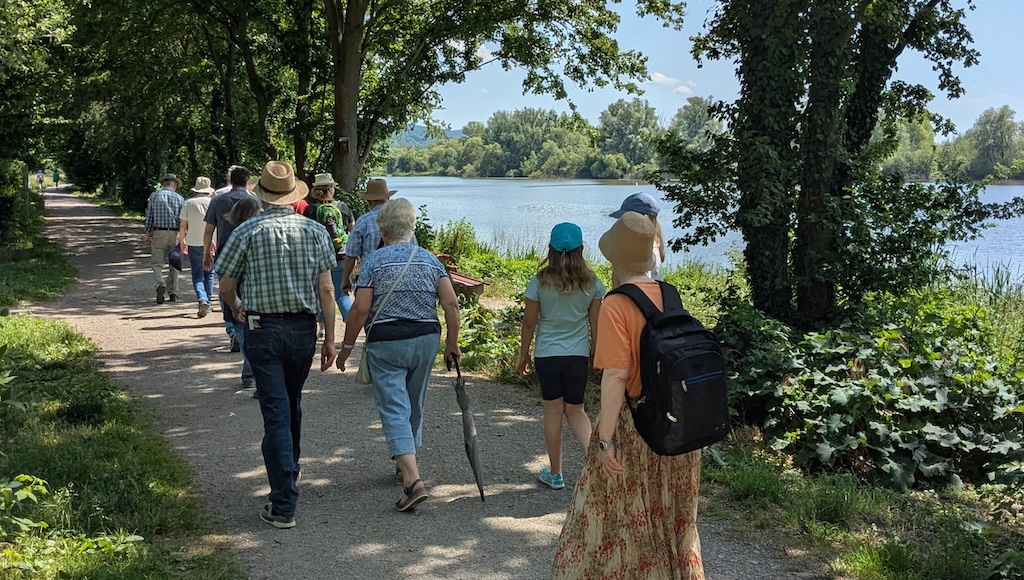 Wandern „mit Ruhe und Gemütlichkeit“ Das neue Wanderprogramm des Odenwaldklubs, Ortsgruppe Bensheim, unter dem Motto „mit Ruhe und Gemütlichkeit“ ging am 31. Mai in die zweite Runde. Erneut kamen über 20 Menschen unterschiedlichen Alters zusammen, um gemeinsam eine gemütliche Runde um den Bruchsee in Heppenheim zu gehen. Treffpunkt war am Parkplatz des Bruchsees. Wer keine eigene Möglichkeit hatte dorthin zu kommen, konnte von Bahnhof Bensheim aus mit einer Fahrgemeinschaft zum Treffpunkt kommen. Nach einer kurzen Begrüßung startete die Wanderung unter der Führung von Brigitte Bach und Dina Riebel. Bei unerwartet heißen Temperaturen waren alle erfreut über den Wanderweg, der nie lange Sonnenpassagen hatte. Immer wieder konnten kurze Pausen im Schatten der Bäume genossen werden. An dieser Wegstrecke konnte man, über Weizen- und Gerstefelder hinweg blickend, einen Teil der wunderschönen Bergstraße bestaunen, der von der Sonne herrlich beschienen wurde. Ebenso lud der „Kunst und Klangweg“, dessen Objekte am Wegesrand platziert sind, dazu ein kurz inne zu halten. An der Rückseite des Sees ging die Wanderung auf unterschiedlichen Wegen weiter. Während Brigitte Bach den grasbewachsenen Trimm-dich-Pfad lief, ging Dina Riebel weiter auf dem ebenen, befestigten Weg. Vermutlich war es dem Wetter zuzuschreiben, dass sich lediglich die Kinder für den Trimm-dich-Pfad entschieden. Auf diesem Teil des Weges konnten nun die am Wegesrand zuhauf wachsenden Lilien bestaunt werden, die zwar zumeist bereits verblüht waren, deren imposantes Blütenmeer sich aber durch vereinzelte blühende Exemplare noch erahnen ließ. Am Ende der Wanderung kehrten alle im „Bruchsee Café & Biergarten“ ein. Bei kalten Getränken, Kleinigkeiten zu Essen und zu Naschen, blieb die gesamte Gruppe noch eine ganze Weile gemütlich beisammen. Alle Anwesenden äußerten sich erfreut über das neue Programm. Im nächsten Quartal wird die dritte Wanderung „Mit Ruhe und Gemütlichkeit“ stattfinden, die hoffentlich auch von so wundervollem Wetter begleitet wird.