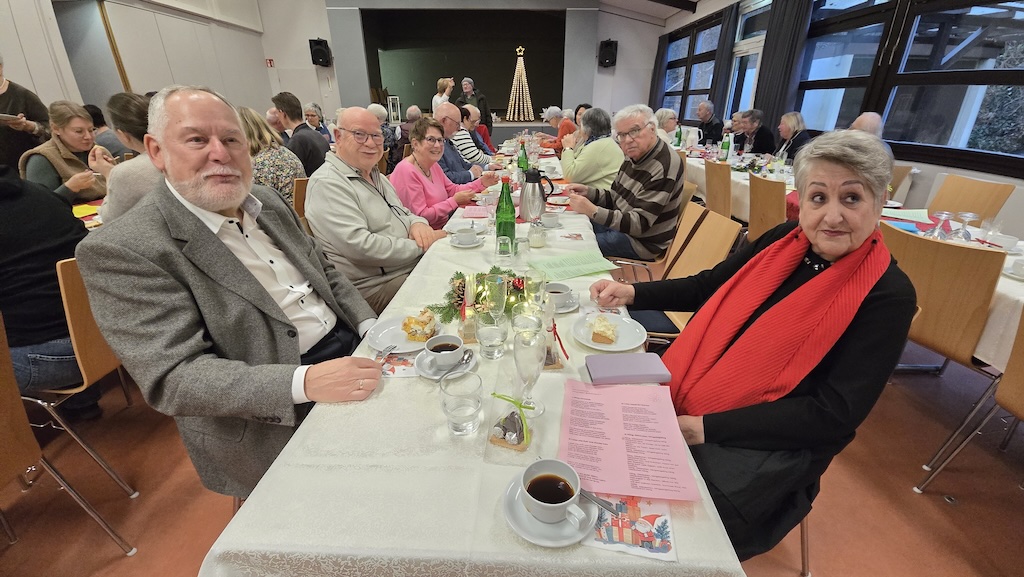 Weihnachtsfeier und Wanderung in den Advent Der OWK Bensheim e. V. schloss das Wanderjahr 2025 mit einer sehr gut besuchten Weihnachtsfeier und der traditionellen Wanderung in den Advent ab. Die rege Teilnahme und die aktive Mitgestaltung, insbesondere durch die jüngsten Mitglieder, zeigen, wie lebendig und engagiert das Vereinsleben ist. Solche Veranstaltungen stärken nicht nur das Miteinander, sondern geben auch Anlass, auf ein erfolgreiches Jahr zurückzublicken und voller Vorfreude ins neue Jahr zu starten. Der festlich geschmückte Saal und der frisch gebackene Kuchen, lud die Mitglieder ein, gemeinsam innezuhalten und den Moment zu genießen. Ein Sektempfang eröffnete die Feier. Bei guter Unterhaltung und einem liebevoll gestalteten Programm verging die Zeit wie im Flug. Mit besonderer Freude sieht der Wanderverein, dass sich bereits die jüngeren Mitglieder aktiv einbringen. So begeisterte die 9-jährige Helene Horneff die Anwesenden mit ihrem Vortrag des Gedichts „Wenn es Winter wird“ von Christian Morgenstern und der 6-jährige Phillipp Horneff mit dem Gedicht „Advent, Advent, ein Lichtlein brennt“. Mit einem verschmitzten Lächeln kam „und wenn das fünfte Lichtlein brennt, hast Du Weihnachten verpennt“. Im Anschluss brachte Gisela Stens mit ihrer heiteren Geschichte über den wiedergefundenen, sich drehenden Christbaumständer, der außer Kontrolle geriet und den frisch geschmückten Weihnachtsbaum immer schneller drehte bis das Lametta, die Kugeln, und die Süßigkeiten sich über die Familienmitglieder verteilte, so manchen Lacher in die Runde. Im Anschluss kam für die Kinder der Nikolaus. Für beschwingte Stimmung sorgten Mimi Grimm, das Mädchen mit dem Kontrabass, und ihr musikalischer Duopartner. Mit bekannten Schlagern und festlichen Weihnachtsliedern zum Mitsingen begeisterten sie das Publikum und brachten den Saal zum Klingen. Zum Abschluss kam das Geschenk an die Mitglieder und Gäste. Der neue Wanderplan 2026, verziert mit einem selbstgebastelten Stern, wurde überreicht. Adventlich, eine Wanderung im mystischen, nebeligen Wald, war die letzte Aktion im Jahr 2025. Robert Gratz, Elfi Klinger und Brigitte Bach führten die 26 Teilnehmer, in drei Gruppen, mit unterschiedlicher Tourenlänge, zum Basislager der Ferienbetreuung, in der Nähe des „Blauen Türmchens“. Während des Spaziergangs durch den Baßmannspark teilte Ulrike Gratz auf sehr interessante und unterhaltsame Weise Wissenswertes zur Geschichte und den Besitzverhältnissen des Parks mit uns. Eine stimmungsvolle Atmosphäre entstand am Lagerfeuer, wo Rebecca und Daniel Brendle für die Wandergruppe liebevoll Glühwein und süße Leckereien bereithielten. Mit der gemeinsamen Einkehr, bei netten Gesprächen wurde das Wanderjahr 2025 abgeschlossen.