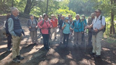 Durch Wald und Feld im Hatzbachtal Odenwaldklub: Auf zwei Strecken war der OWK Bensheim im Kreis Marburg auf Wandertour. Der Odenwaldklub (OWK) Bensheim wanderte im Hatzbachtal, im Kreis Marburg, auf Wanderstrecken "Rund um den Wetzstein". Die Gruppe mit 37 Teilnehmern startete um 8 Uhr mit einem komfortablen Reisebus, vom Bensheimer Busbahnhof. Die Fahrt ging bis Homberg/Ohm, dann auf Landstraßen, durch den Kreis Marburg, vorbei an Europas größtem Basalt-Tagebau, der seit 1905 besteht und jährlich rund 800 000 Tonnen Schotter und Splitt, auf einer Fläche von 45 Hektar abbaut.Von weitem war die Amöneburg sichtbar, wo Bonifatius im Jahre 721 nach Chr. ein Kloster gründete. Der 365 hohe Basaltkegel Amöneburg wurde schon 2000 Jahre vor Chr. besiedelt und ist bekannt für sein Gymnasium, und die prächtige Kirche"St. Johannes der Täufer", aus dem 14. Jahrhundert. Am Startort in Stadtallendorf-Hatzbach, am Georgsteich, startete die Gruppe mit Eike Erden, von den Wanderfreunden Hatzbachtal, bei schönstem Sonnenschein. Die Gruppe teilte sich, um die dortigen permanenten Wanderwege zu erkunden. Gruppe 1 wählte die 7 km-Strecke, die nach einem kommoden Aufstieg, den Berg hinauf , die frühere Grenze zwischen der Landgrafschaft Hessen-Kassel und dem Kurfürstentum Mainz erreichte. Hier führte der Wanderweg auf einem alten Grenzweg weiter, an dem noch einige Grenzsteine, aus dem Jahre 1756 stehen. Ursprünglich gehörte das Gebiet, auf beiden Seiten, zur Grafschaft Ziegenhain. Die Grenze entstand 1294. Der Weg ging von der Rhein-Weser-Wasserscheide stetig bergab. Am Rastplatz Heidehäuschen wurde eine Rast eingelegt, danach ging es am Georgsteich vorbei auf einem Wiesenweg zur Kahlsmühle. Die Gruppe 2 wählte die 2 Kilometer lange Strecke, trennte sich nach ca. 300 Metern von der ersten Gruppe und ging auf einem befestigten Wirtschaftsweg bergauf, erreichte die frühere Grenze, ging auf naturbelassenen Wegen an vielen Grenzsteinen von 1756 hinauf zur Rhein-Weser-Wasserscheide. Dann ging es weiter zum Mooshäuschen, dort wurde eine kurze Rast eingelegt, bevor es weiter sanft bergauf und bergab ging: über den "Hexentanzplatz", auf dem Hochgesangsweg, am Waldrand mit einem schönen Weitblick zur Amöneburg. Dann führte Waltraud Erdel von den "Wanderfreunden Hatzbachtal" die Gruppe durch Wald und Feld zur Kahlsmühle. Dort traf man sich wieder mit der ersten Gruppe zu einem reichhaltigen Grillbüffet und nach insgesamt 9 und 14 Kilometern hatten sich alle das üppige Schlemmermahl verdient. Man genoss das sonnige Wetter, den schönen Ort und sah sich auf dem Ferienbauernhof um. Alle starteten zufrieden und gut gelaunt zum Rückweg über Marburg/Lahn nach Bensheim. Uschi Junker bedankte sich im Namen aller Teilnehmer bei den Wanderführern Mechthild und Wolfgang Nahrgang für die gute Organisation, den schönen Wanderwegen und die tolle Einkehr in der Kahlsmühle.