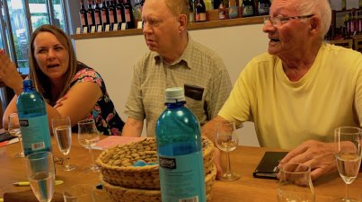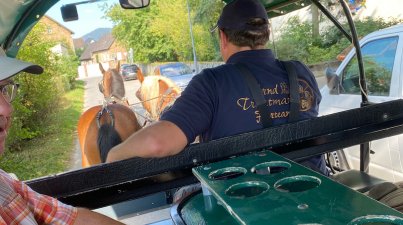 Mit Pferdestärken in die Natur zur Weinprobe! Für den Odenwaldklub Bensheim ging es mit dem Planwagen mit Pferdegespann vom Birkenhof Stall Trautmann in Schwanheim los. Die Spätnachmmittagsonne begleitete uns von Schwanheim 1.5 Stunden durch die Felder und Wiesen von Fehlheim, über Rodau, bis in den Berliner Ring, nach Auerbach, zum Weingut Hanno Rothweiler. Zur Freude aller Mitglieder und Gäste; eine schöne Ausfahrt. Am Weingut Rothweiler begrüßte uns Frau Christa Guth im Außenbereich mit einem Secco Staccato. Ein gelungener Auftakt für die folgende Weinprobe im Weingut. Auf jeden Gast wartete ein reichlicher Vesperteller mit Wurst, Käse und frischem Brot, sechs ausgewählte Weine, und für die Teilnehmer, die nicht den Wein probieren wollten, verschiedene Säfte, so dass keiner durstig nach Hause musste. Christa Guth erklärte uns mit viel Wissen und Freude die Unterschiede und Besonderheiten der einzelnen Weine. Äußerst kurzweilig erfuhren wir viele interessante Details, rund um Weinanbau, Rebenpflege und Weinherstellung. „Der Wegweiser zu gutem Geschmack“; wie Winzer Hanno Rothweiler in seinem Flyer seine Weine besonders herausstellt. Zwischen Sommercuvee, rotem Riesling, gelbem Muskateller, Grauburgunder Lemberger-Merlot, und einem erstklassigen Cabernet-Sauvignon, fiel die Wahl für den persönlichen Favoriten sehr schwer. Es war erneut ein gelungener, genussvoller, fröhlicher und unterhaltsamer Abend. Vielen Dank an Frau Brigitte Bach, vom OWK Bensheim, für die großartige Planung und Vorbereitung. Schließen Sie sich uns nächstes Mal gerne an.